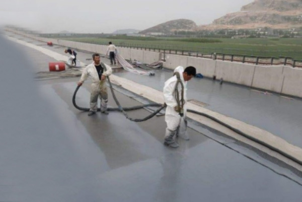 聚脲塗料噴塗,聚脲塗層的噴塗應在底漆施工後3~168小時內進行,如果間隔超過168小時,在噴塗聚脲塗層前天應重新施工一道底漆,然後再施工聚脲層。在噴塗之前,應用幹燥的高壓空氣吹掉表麵的浮塵。